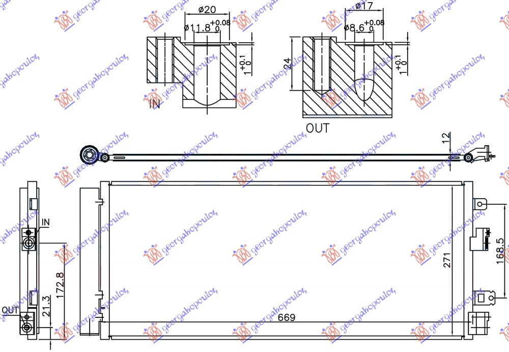 HLADNJAK KLIME BENZIN/DIZEL (637x280x12) SA 2 NOSACA OPEL CORSA E 15-19