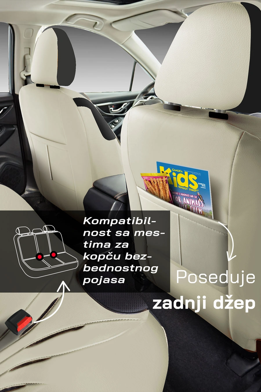 Nije potrebno sečenje: Kompatibilan sa mestima za sigurnosne pojaseve na zadnjim sedištima.