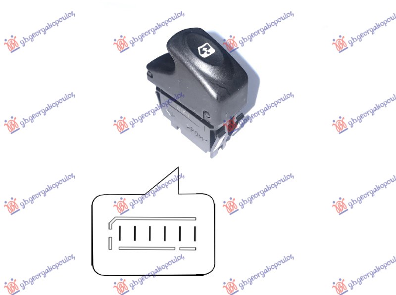 PREKIDAC U PREDNJIM/ZADNJIM VRATIMA L=D (CRNI KONEKTOR) (6 PIN) RENAULT CLIO II 1998-2001 (BB/CB)